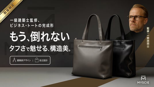 オーサムアートボーイ合同会社(所在地:東京都町田市、代表:今野秀胤)が展開するライフスタイルブランド「MYSCIE(ミースオーシー)」は、一級建築士監修のもと開発したビジネストートバッグ『MYSCIE 次世代タフトート』を、クラウドファンディングサービス「Makuake(マクアケ)」にて2025年11月26日(水)10:00より先行公開いたします。