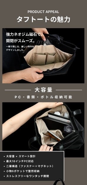 “倒れない構造”と“軽量620g”を両立。建築的な強度設計で毎日のストレスを解消する次世代タフトートをMakuakeで先行公開