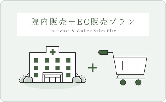 <院内販売+EC販売プラン> 院内販売に加えて、オンラインを活用した販売チャネルまで整備するプランです。クリニックに来院できない患者様や遠方の方にも製品をお届けでき、認知拡大と収益性の向上を目指せます。ECサイト構築、決済・配送の仕組みづくり、SNSやWeb広告を活用した集客施策までワンストップで支援。「ブランド」としてしっかり育てたい、積極的に展開していきたいクリニック様におすすめです。