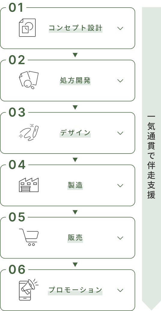 「医療の知見を、ブランドの力へ」をコンセプトに、製品企画から処方開発、デザイン、販促までをワンストップでサポートします。