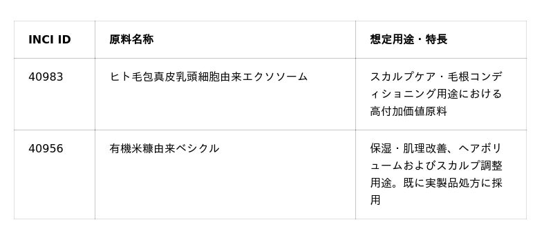 本件は、同社の自主研究開発による技術力が国際的な化粧品原料命名および規制体系に正式に認められたことを意味し、今後の高機能スカルプ・ヘアケアおよびスキンコンディショニング製品の開発において、確固たる原料および法規基盤を構築する重要なマイルストーンとなります。