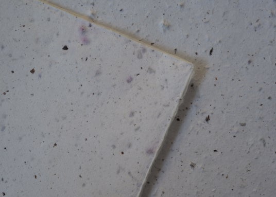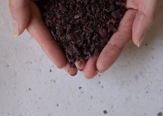 和紙の原料(楮)に煮出した後のブルーベリーの実を混ぜ込んだ手漉き和紙(西ノ内紙)