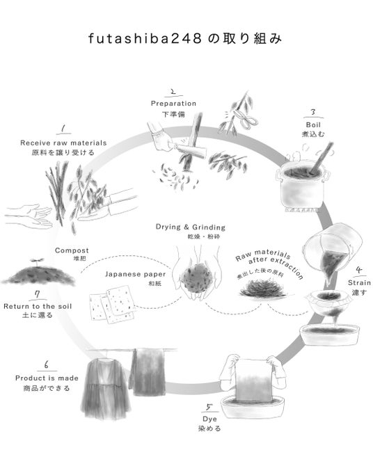 手作業の染色、茨城の伝統文化である手漉き和紙(西ノ内紙)、ニッチフレグランスを組み合わせ、