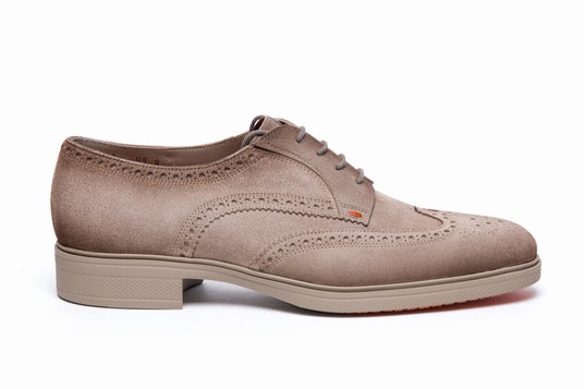 屈曲性に優れた作りとわずか295gという軽量構造が特徴の「Easy」コレクションのダービーシューズ。スエードを使用し、クラシックなブローグモチーフを施したデザインで、オフィスルックから夜の外出まで幅広く活躍します。パーフォレーション入りのナッパレザー製ライニングとメモリーフォーム素材のインソールもポイント。ラバーソールのグラフィックは2つの機能を凝縮:革新的なグリップシステムで、アイコニックなDouble Buckle柄のパターンがシューズの耐久性を高めると同時に、滑り止めの役割を果たします。アッパーに目立たないように配置したゴムが、抜群に快適な履き心地をもたらします。