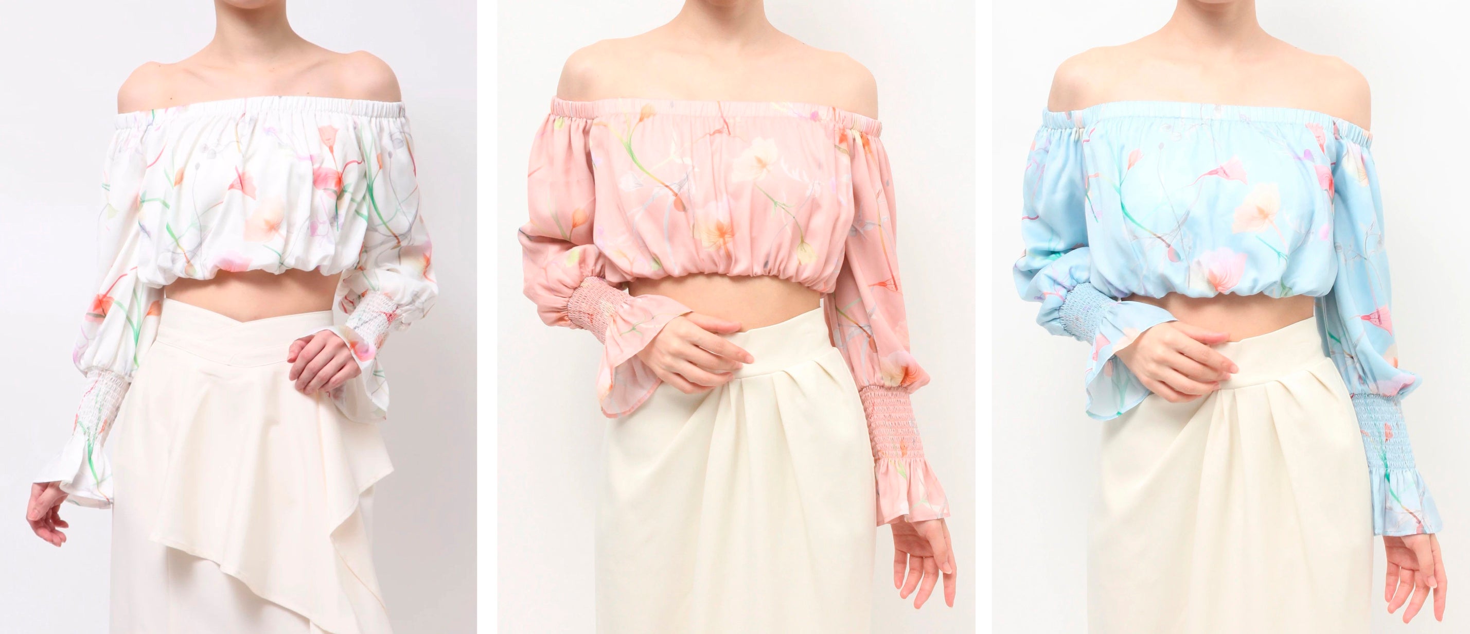 ワンピース、トップス、ロングスカート、それぞれに施されたエアリーなディテールが着用時に揺れ動き、素材に散りばめられた花が舞い、ユーザーを包み込むようなデザインに仕上がりました。memorif.のフラワーアート共に、とっておきの多幸感を感じていただけたら嬉しいです。