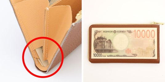 1万円札ギリギリサイズなのにお札の角が折れず収納可能