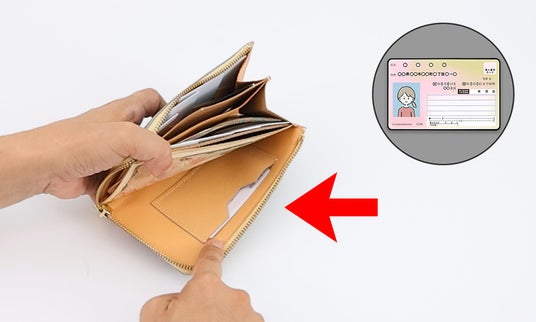 お札入れの最も奥に、マイナカード専用の隠しポケット設置