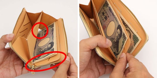 奥まで入るのでファスナーに噛む心配なし。今回のリニューアル版はお札の仕分けも可能