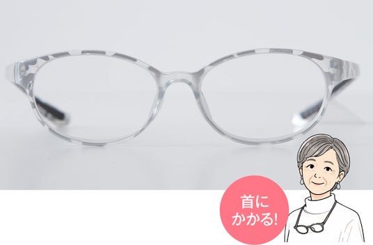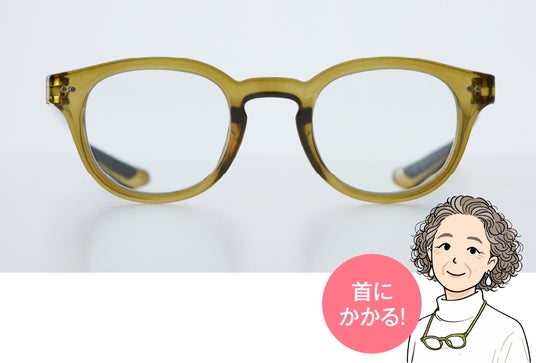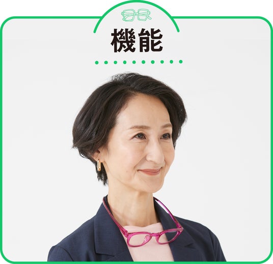男性・女性を問わず顔立ちになじみやすく、初めて老眼鏡を選ぶ方でも手に取りやすい形に仕上げています。