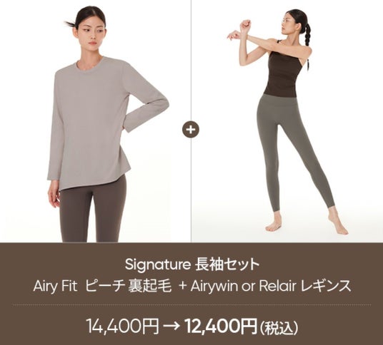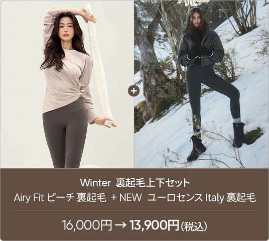 さらに、ポップアップストア限定の特別なセット商品もご用意しております。伊勢丹新宿店先行販売のカラーTシャツを含む「ピラティスセット」や、今冬シーズンに自社ECサイトで即完売した高品質イタリア産原糸を使用したユーロセンス裏起毛レギンスを含む「裏起毛セット」など、計4種類の限定セットをご提供いたします。