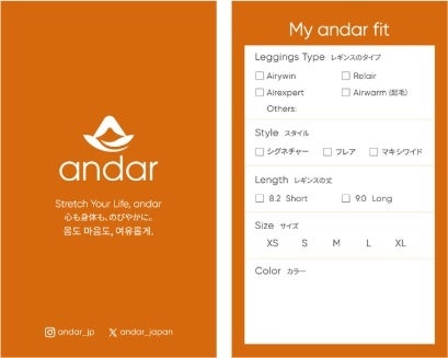 ポップアップストア期間中、店頭にてご試着いただいたお客様全員にサイズとカラーを記載した「My andar size card」 を伊勢丹新宿店限定でプレゼントいたします。お一人おひとりに合ったスタイルを1対1でご提案いたします。