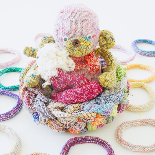 S.Laboではこれまでにも、ソックループを紙管(糸を巻くための円すい形の芯)に巻きつけてツリー型のオブジェをつくる「SOUKI TREE WORKSHOP」や、残糸で編んだくつ下とソックループを組み合わせてぬいぐるみを制作する「SOUKI MONKEY WORKSHOP」など、アップサイクル素材を用いたワークショップを継続的に実施しております。