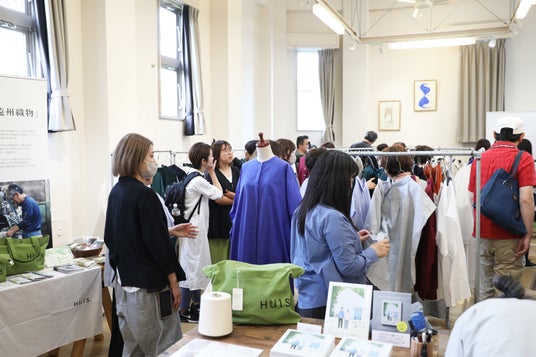 期間限定ショップ「HUIS room 104」は、こうした声に応えるために開設したもので、会場内では今後、entranceメンバーの遠州織物ファクトリーブランドの販売会なども予定しています。