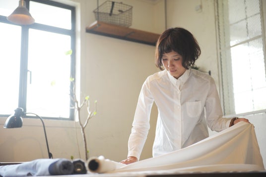 「遠州織物」は世界的なアパレル高級シャツ生地として業界の中では古くから知られた生地。通常の20~30倍の時間をかけゆっくりと織り上げるHUISの生地は、特別な風合いと機能性を持つ。
