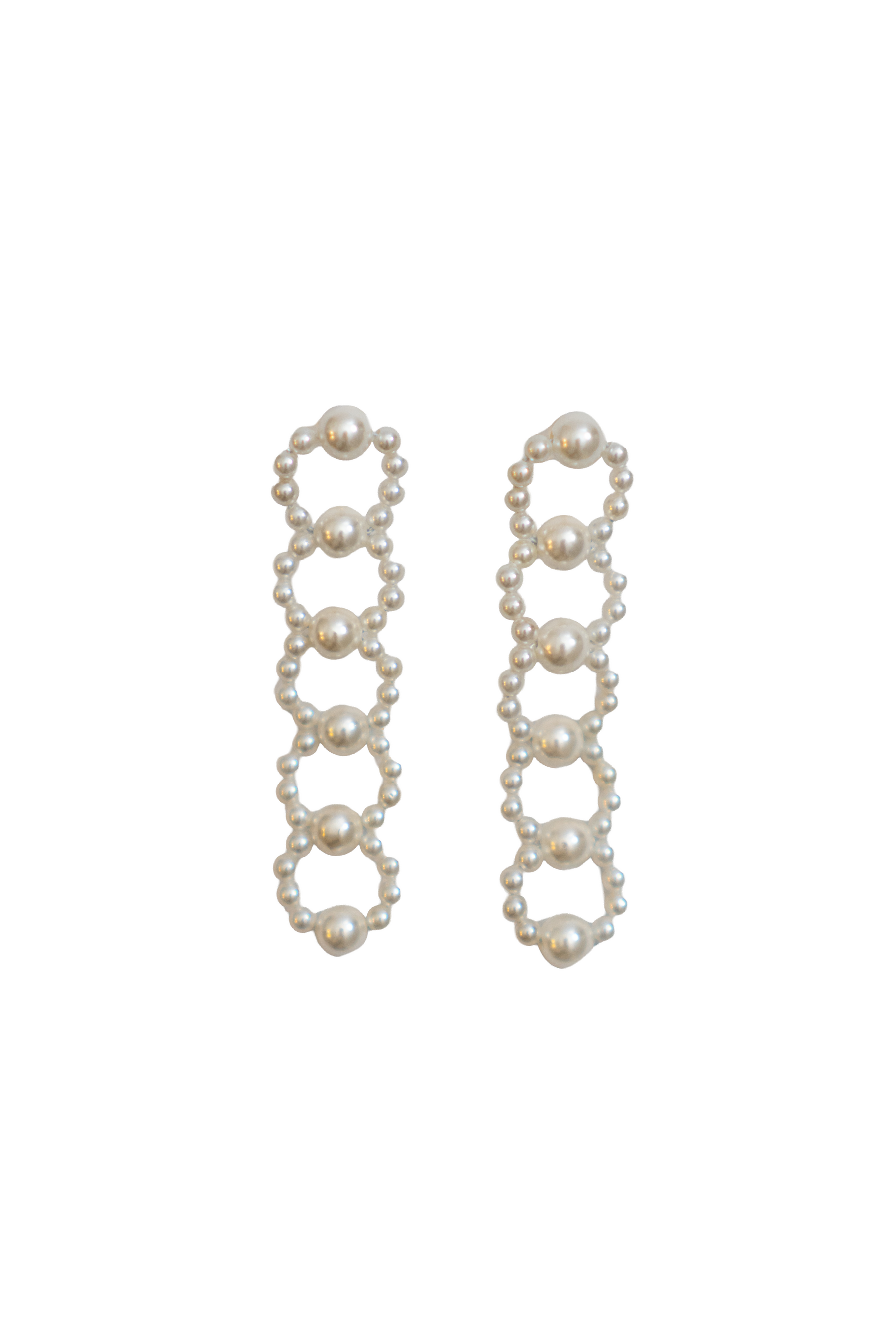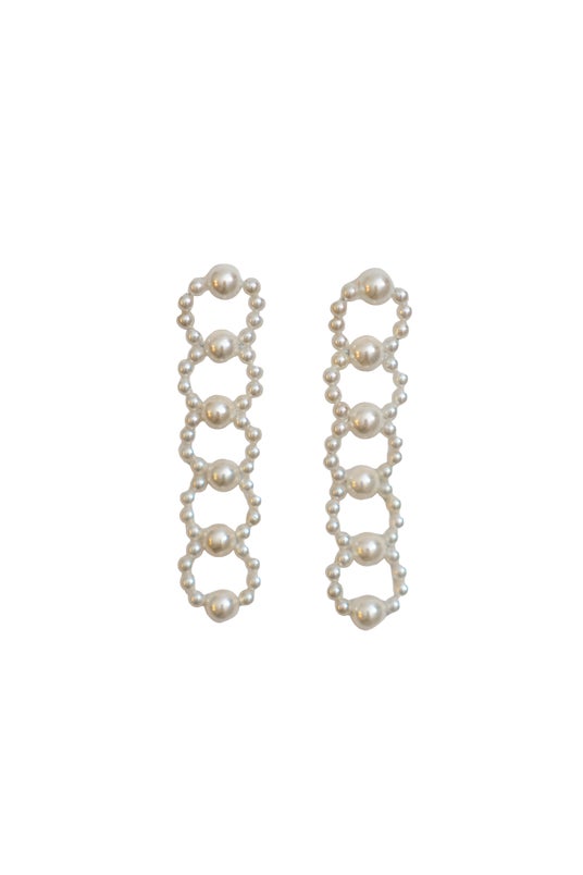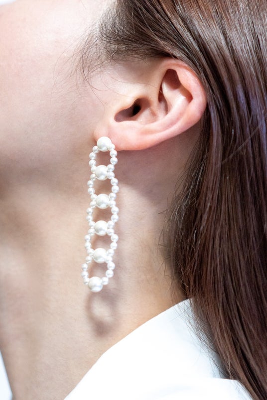 パールをふんだんに使い、5連のサークルを描く存在感たっぷりのピアス。