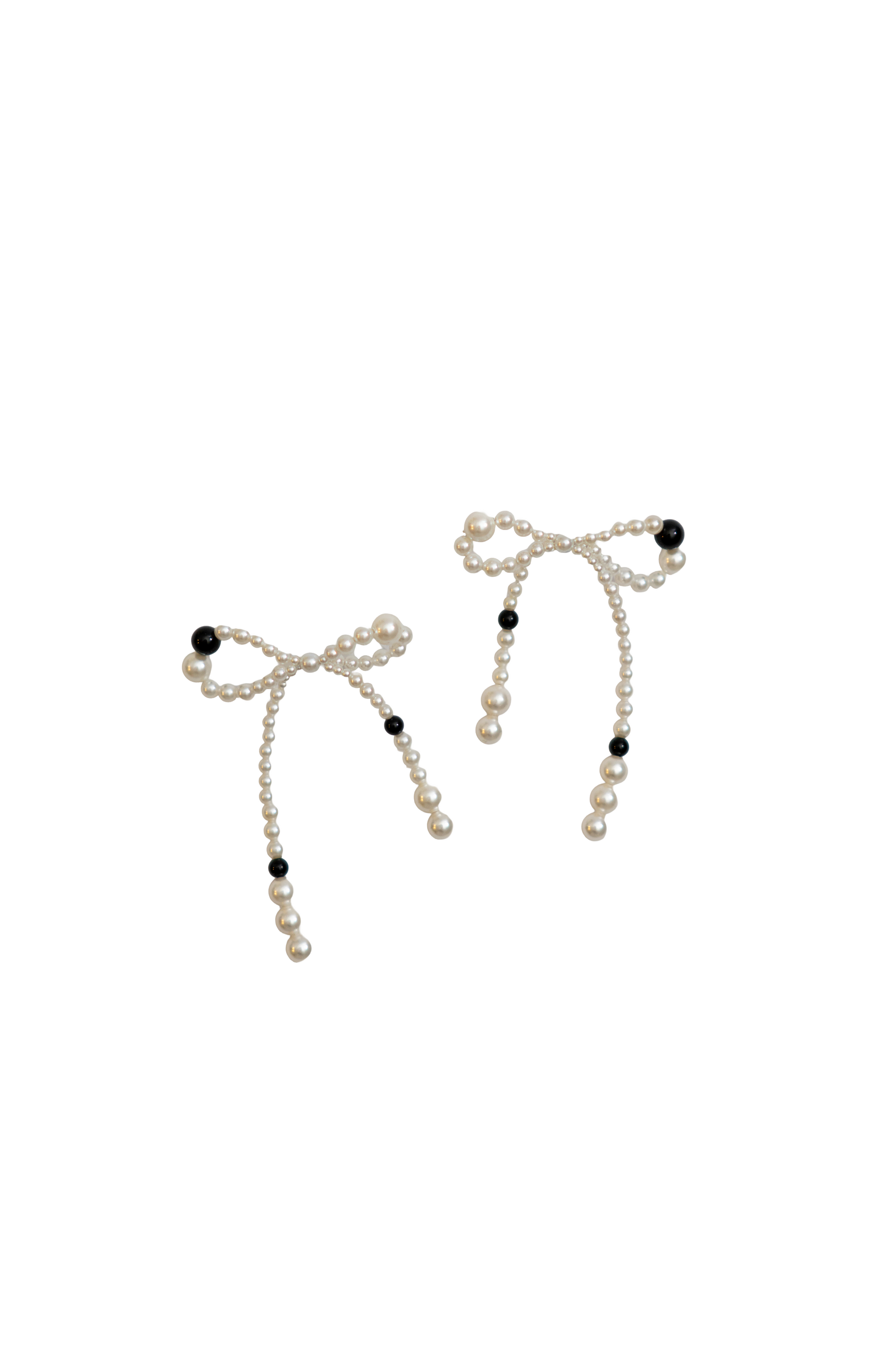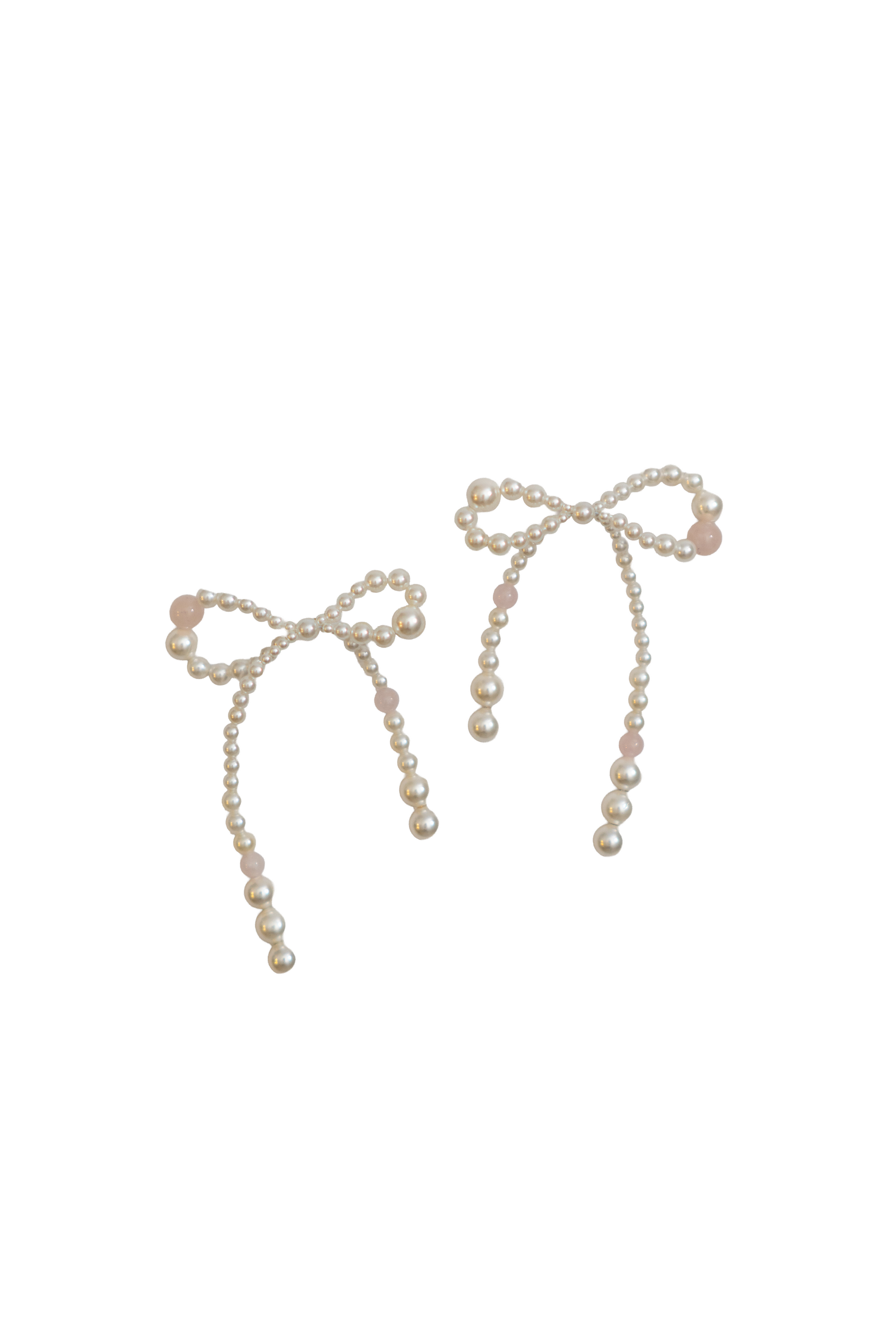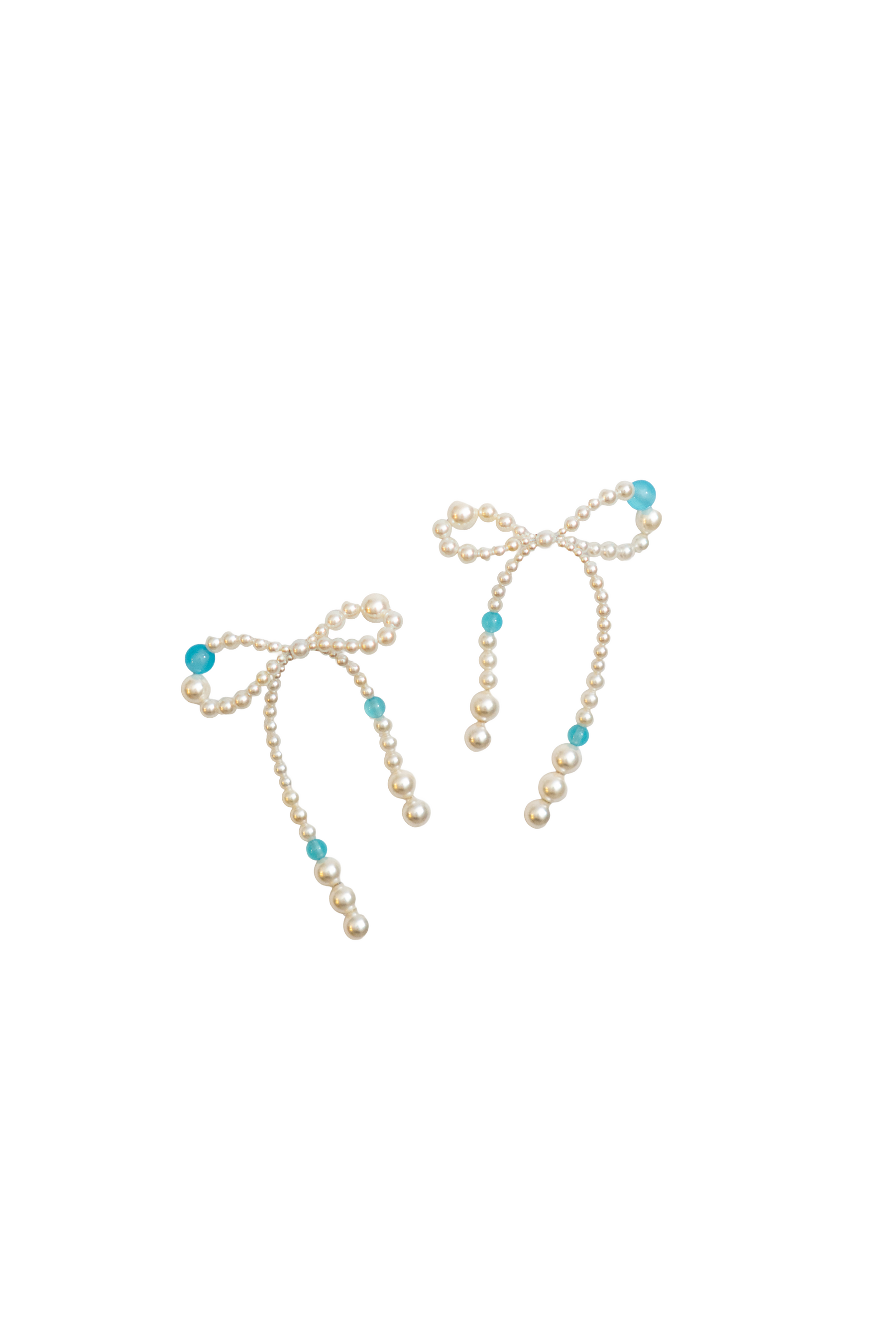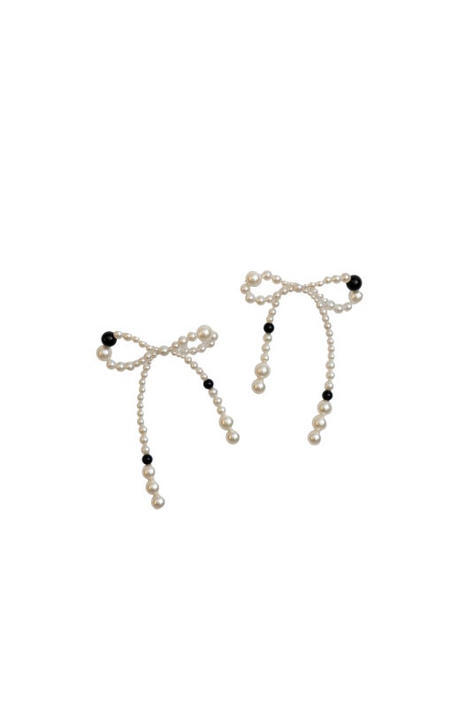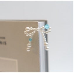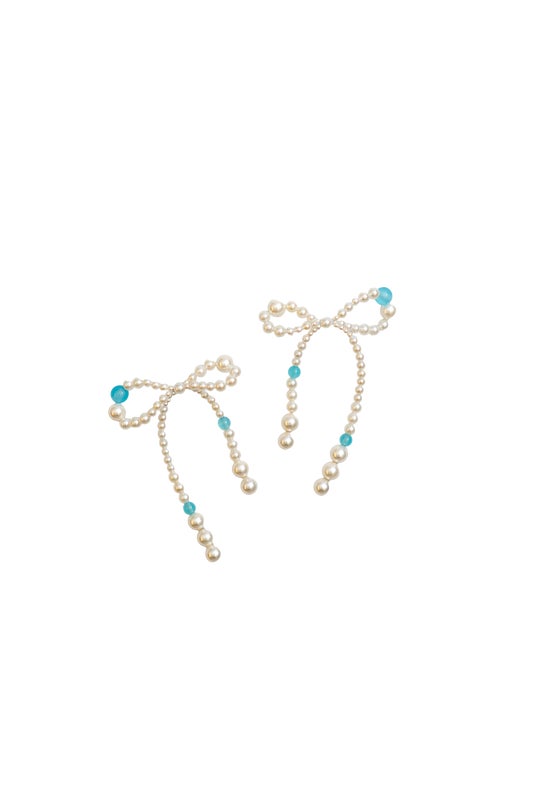 パールの中にカラーストーンを入れ込んだ、リボン型のピアス。