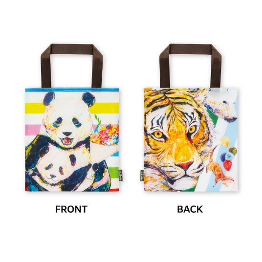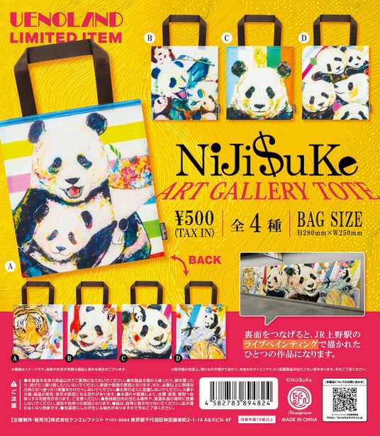 本製品のイラストは、Niji$uke氏が昨年、上野駅公園改札内のアートスペース「Yamanote Line Museum 上野駅公園口」にて、8m×2mの巨大なキャンバスに描かれたカラフルなミューラルアートをそのままトートバッグとして商品化したものです。