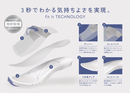 「fit it」は、ソールとゴムの独自構造により特許を取得しています。