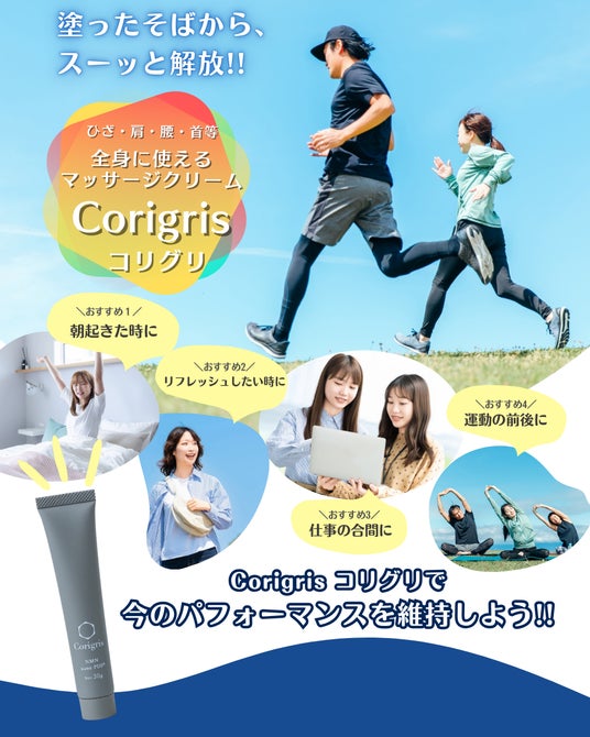 ひざ・肩・腰など全身に使えるマッサージクリーム『Corigris コリグリ』