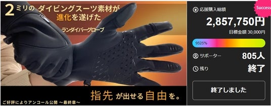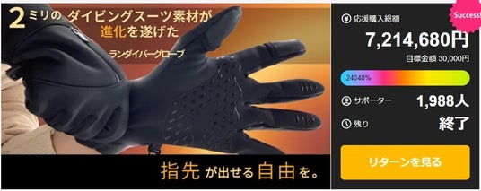 ランダイバーグローブのプロジェクトでは、累計2,793人の応援を受け、約3,273件の出荷業務を実現。