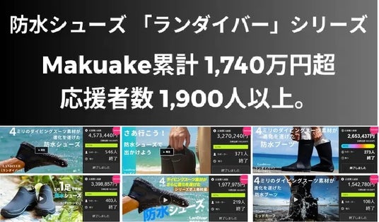 機能性シューズブランド「and・more(アンドモア)」は、防水・耐滑シューズを中心に、クラウドファンディングを活用した商品開発・販売を行っており、これまでに累計6,046万円以上のご支援をいただいてきました。クラウドファンディング実績を見る