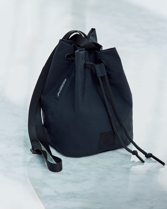 本コレクションでは、巾着型ショルダーバッグとメッセンジャーバッグの2モデルを展開。いずれも、使用済み漁網由来のリサイクルナイロンタッサーを採用。特殊加工により、マットで上質な質感とドライタッチを実現しました。