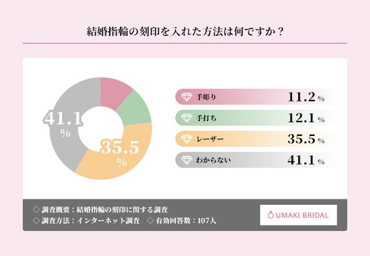 株式会社アイジュエリー・ウマキ(本社所在地:岡山県倉敷市、代表取締役:馬木 豊文)は、結婚指輪を購入済みの全国20~60代の男女107名を対象に、結婚指輪の刻印に関する調査を実施しました。