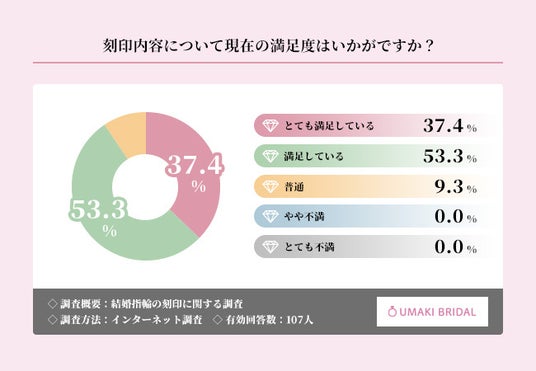90.7%が結婚指輪の刻印内容に「満足」と回答、極めて高い満足度を示す