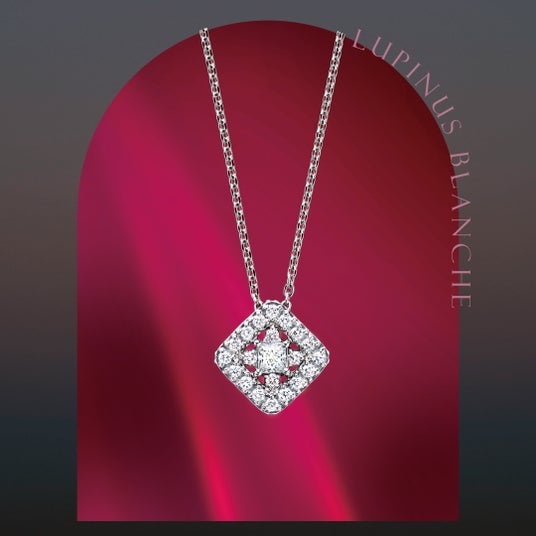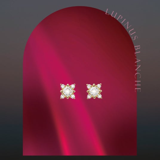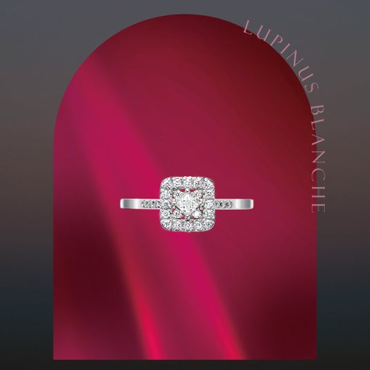 澄んだ冬空に、そっと咲く白いルピナスのように。センターに輝くO.E.プリンセスカットの透明感、その周囲を取り巻くメレダイヤモンドの繊細なきらめきが、純粋な想いをそっと包み込みます。