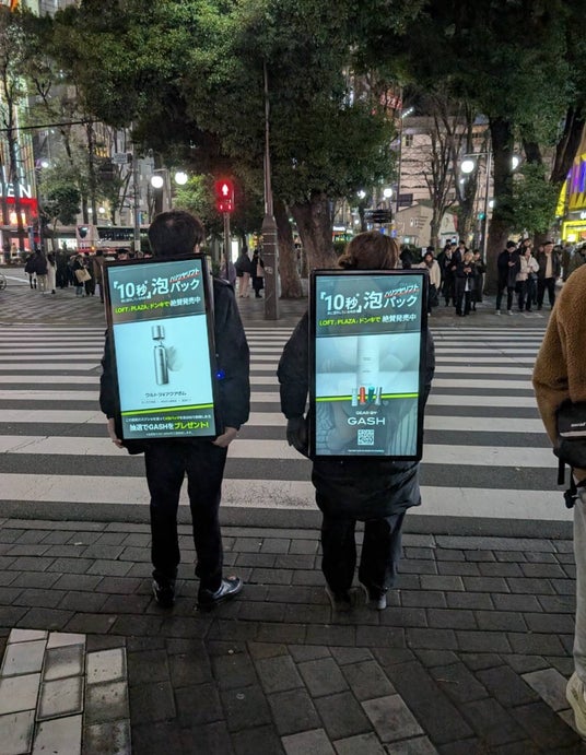 「アドマンは、大型モニターを背負ったスタッフが、街中を歩く広告サービスです。通行人と同じ目線、同じスピードで歩くことで、自然と視界に入り、強い印象を残すことができます。大型の屋外広告が”風景”として見過ごされてしまうのとは対照的に、人の動きとともに情報が拡散されるアドマンは、『思わず二度見してしまう』『写真を撮りたくなる』という体験型広告です。この体験こそが、SNSでの自然な拡散を生み、GASHがまだ出会えていない多くの方々に情報を届ける鍵になると期待しました」