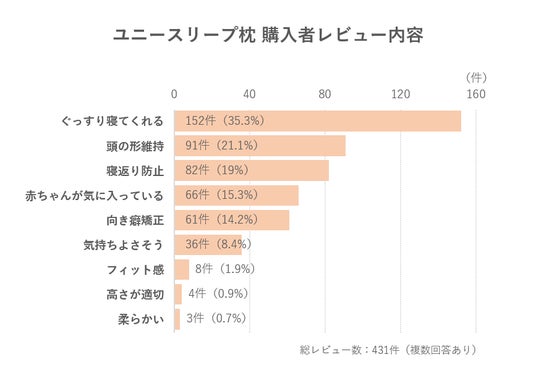 ユニースリープ枕の購入者は赤ちゃんが「ぐっすり寝てくれる」ことに最も満足