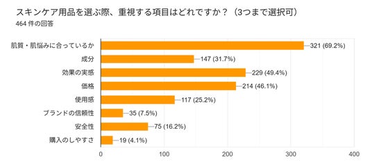また、スキンケア用品を選ぶ際に重視する項目としては、