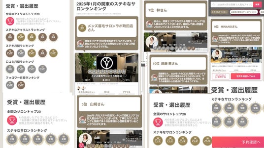 美容プラットフォーム「STEKiNA」2026年1月全国評価にて「全国TOP20」に選出されるとともに、「2026年1月 関東のステキなサロンランキング」において第1位を獲得しました。