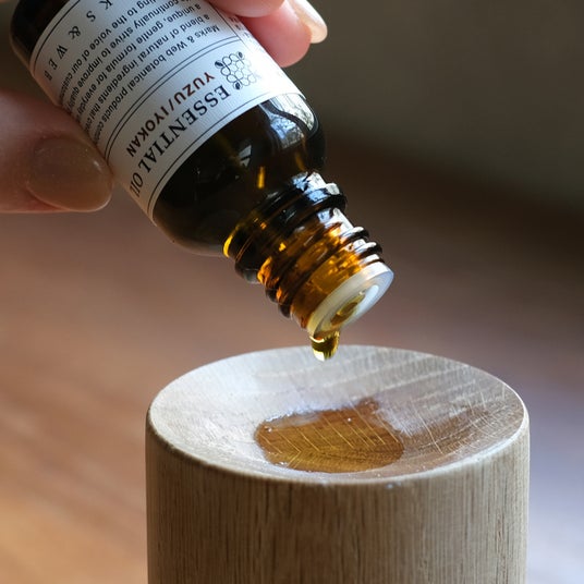 「ユズ/イヨカン」シリーズに使用している天然精油は、徳島県の名東郡佐那河内村(みょうどうぐんさなごうちそん)にある「山神果樹薬草園」で作られたもの。独自にカスタマイズしたペラトリーチェという機械を使い、金属の爪で外皮だけを掻き取りながら表面の油砲をつぶして採油します。この「丸ごと皮削り(R)製法」と名付けられた特別な抽出方法により、果実特有のフレッシュで純粋な香りを楽しむことができます。