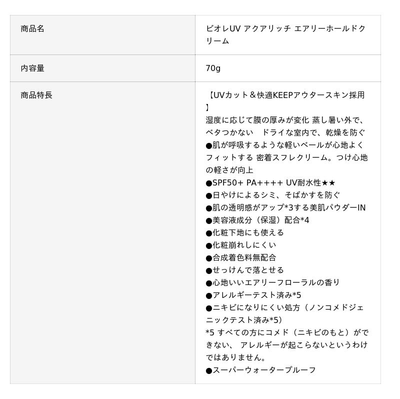 ■ビオレUV「アクアリッチシリーズ」の新作『ビオレUV アクアリッチ エアリーホールドクリーム』