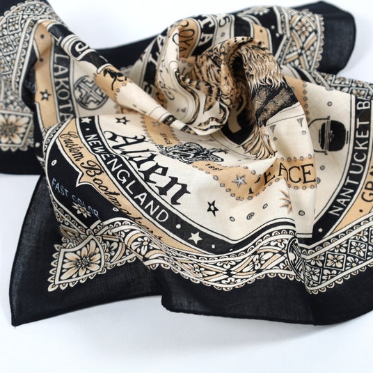 リニューアルオープン記念ノベルティ生地は使い込むことによって柔らかくなり、難しいと言われている裏面までしっかりと染める製法を使い、両面にこだわりを染み込ませた一品に仕上がりました。さらに縁のステッチにはスカーフなどで仕様される千鳥縫製で、細部にまでこだわったメイドイン京都のバンダナです。虎が潜む渾身のデザイン、全貌は新天地で…。