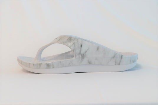 本モデルは、数あるリカバリーサンダルの中でも、「美姿勢歩行(長く、健康に歩ける歩行)」を提唱する足と歩行の総合病院である下北沢病院監修による検証のもと、歩行時の衝撃を約50%軽減することが証明されたアイテムです。そこに、オッシュマンズ独自の視点で「日常のスタイリングに馴染むデザイン」を追求することで、洗練された“ファッションアイテム”へと再構築しました。今回の別注では、都会的で引き締まった表情の「GUN METALLIC×BLACK」や、足元にクールな存在感を与える「MARBLE×COOL GRAY」など、洗練されたモノトーンカラーを採用。リカバリーサンダルとしての機能はそのままにタウンユースにおける「新しい機能美」としての選択肢を提供します。