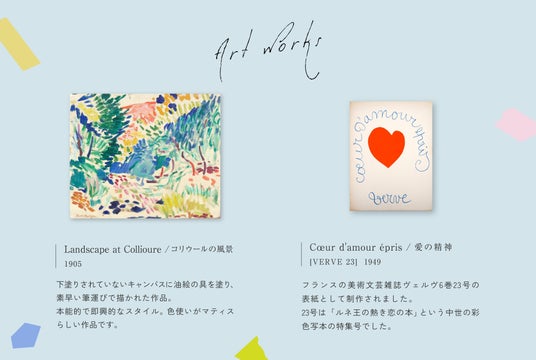 「子育てにもアートを」第2弾は20世紀美術を代表するフランスの巨匠アンリ・マティス。「色彩の魔術師」と呼ばれたマティスのアートをベビー&ママアイテムに落とし込んだコレクションです。