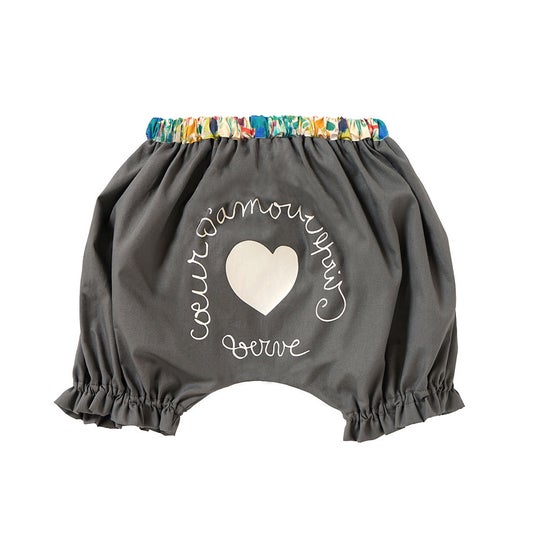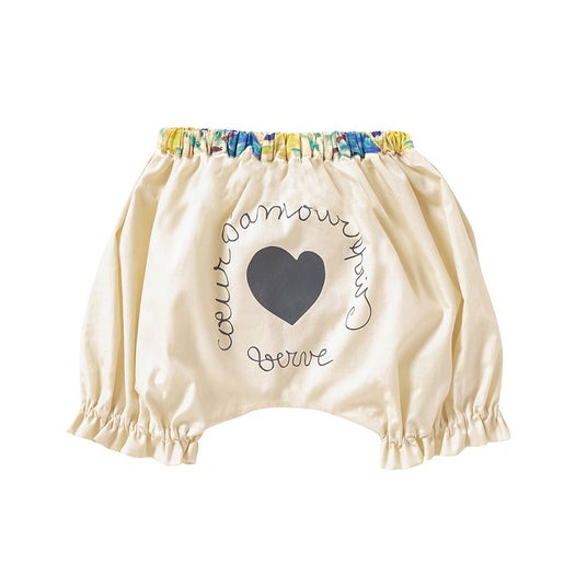 ブルマはハートのプリントがお尻に大きく入ったデザイン。ギャザーをたっぷり寄せたブルマです。