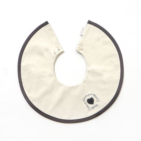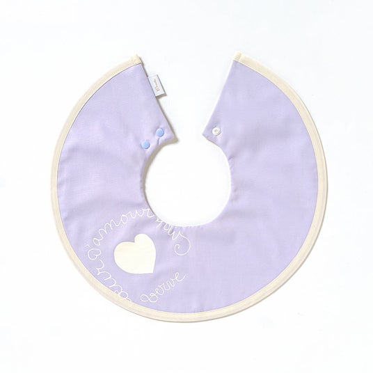 やわらかで上品な光沢感が特長のブロード生地のスタイです。撥水効果のある中芯を挟み込んでいるので、お洋服までよだれが染み込みにくくなっています。