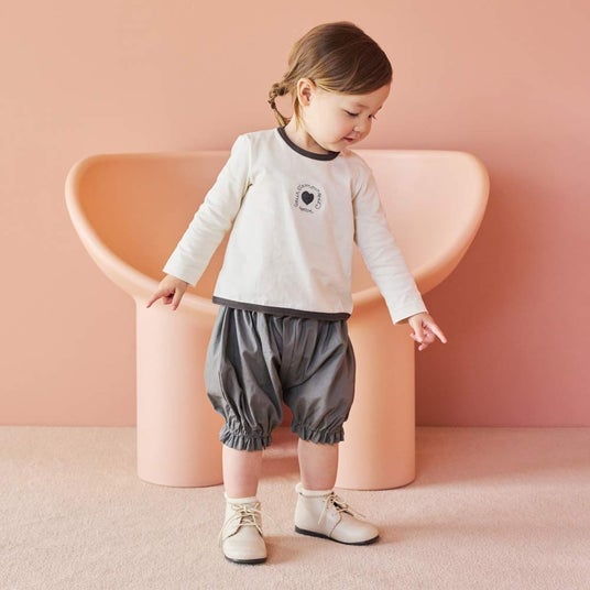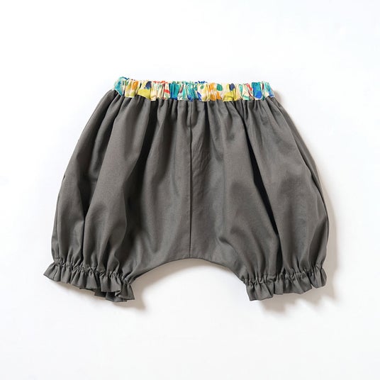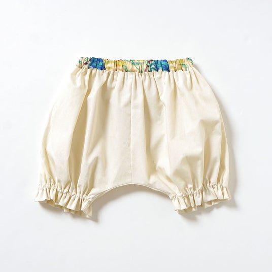 ウエスト部分はマティスの「コリウールの風景」の総プリントが入っており、ポイントになっています。ボディやロンパースに重ねたり、トップスに合わせたりと色々な組み合わせが楽しめて、小さいうちは長めのブルマとして、成長しても短めのブルマとして長くお使いいただけます。