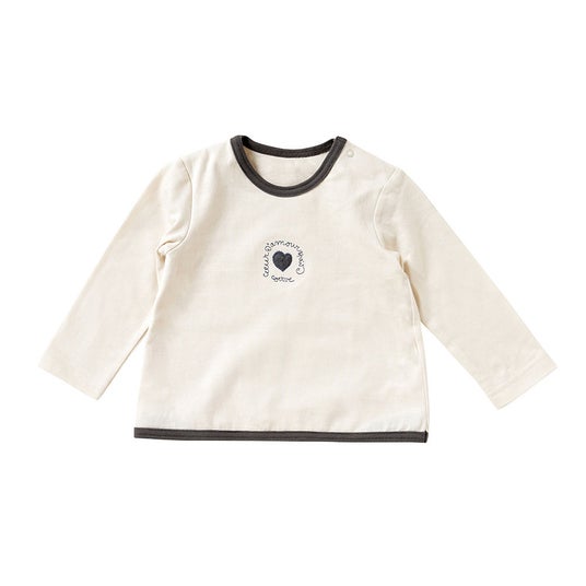 Tシャツは胸元に刺繍とアップリケを施しました。程よい肉感の生地で、長いシーズン着ていただけます。