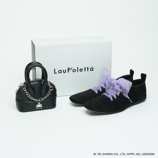 今年はKUROMIの20周年アニバーサリーイヤー!強くてかっこよくてかわいい、みんなが大好きな【KUROMI】とLauf oletta(ラフオレッタ)のコラボは、シューズとショルダーバッグがセットになったスペシャルエディション!