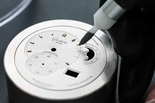 文字盤は時計の顔です。グラスヒュッテ・オリジナルは文字盤の高い品質と完璧な美しさを保証する高度な専門技術を結集しました。薄型の文字盤やフィリグリーのディスプレイディスクの製造には、創造性と経験に加え、細心の注意と配慮が欠かせません。グラスヒュッテ・オリジナルの文字盤の製造には、数多くの工程があります。ブランクの製造からその加工、表面の精巧な研削と研磨、そして多様で複雑な仕上げ工程に至るまで、多くの人の手が、フィリグリー細工の「キャンバス」を正真正銘の芸術作品へと生まれ変わらせるために全力を尽くしています。