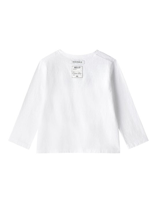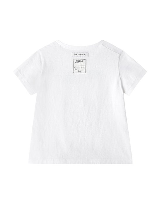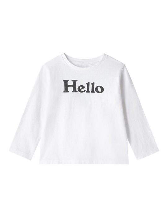 MADISONBLUEは、2026年4月8日(水)よりブランドのアイコン的存在である「HELLO Tシャツ」のキッズ版長袖Tシャツ「HELLO L/S TEE KIDS」を発売します。大人と同じバランスで制作した「ロンT HELLO L/S TEE KIDS」は、すでに展開している半袖同様、ベーシックなホワイトとクールなブラック、各色100~130の4サイズで展開し、子供の繊細な肌に配慮してタグを外側に付けました。ママやパパ、バーバやジージとのリンクコーデも楽しめます。