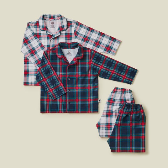 ■モダール ウルトラソフト パジャマセットやわらかさと、伸びの良さが人気ののモダールウルトラソフトパジャマセットに、タータンチェック柄が新登場。子どもが気に入って、これしか着たがらない、という声も寄せられるパジャマで、ホリデーシーズンも心地よく過ごしてくださいね。首回りにスナップボタンがないため、着替えやすさも抜群です。
