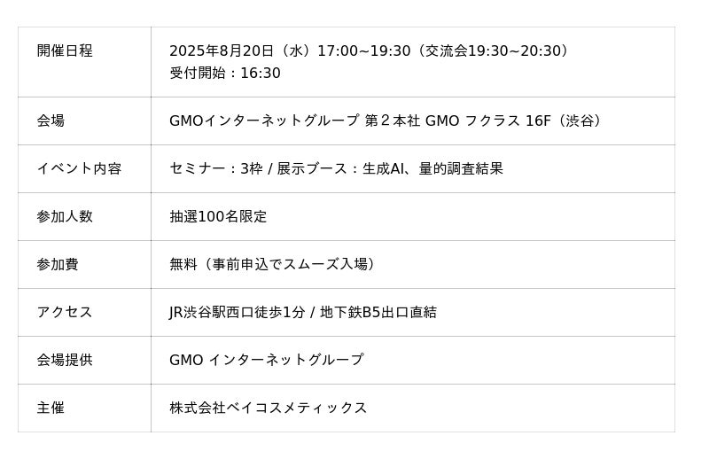 2025年8月20日、GMO Yours・フクラスにて「NEXT COSMETIC EXPO 2025」が開催されます。