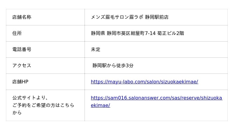株式会社ベルトレンド(本社:大阪府大阪市 代表取締役社長 瀧川 維星)は、2026年2月16日に、全国16店舗目となる「メンズ眉毛サロン眉ラボ 静岡駅前店」をオープンいたします。