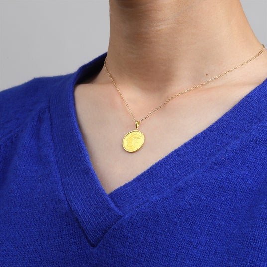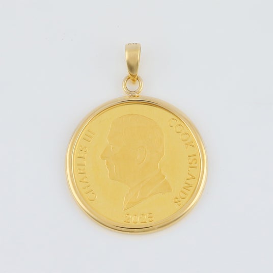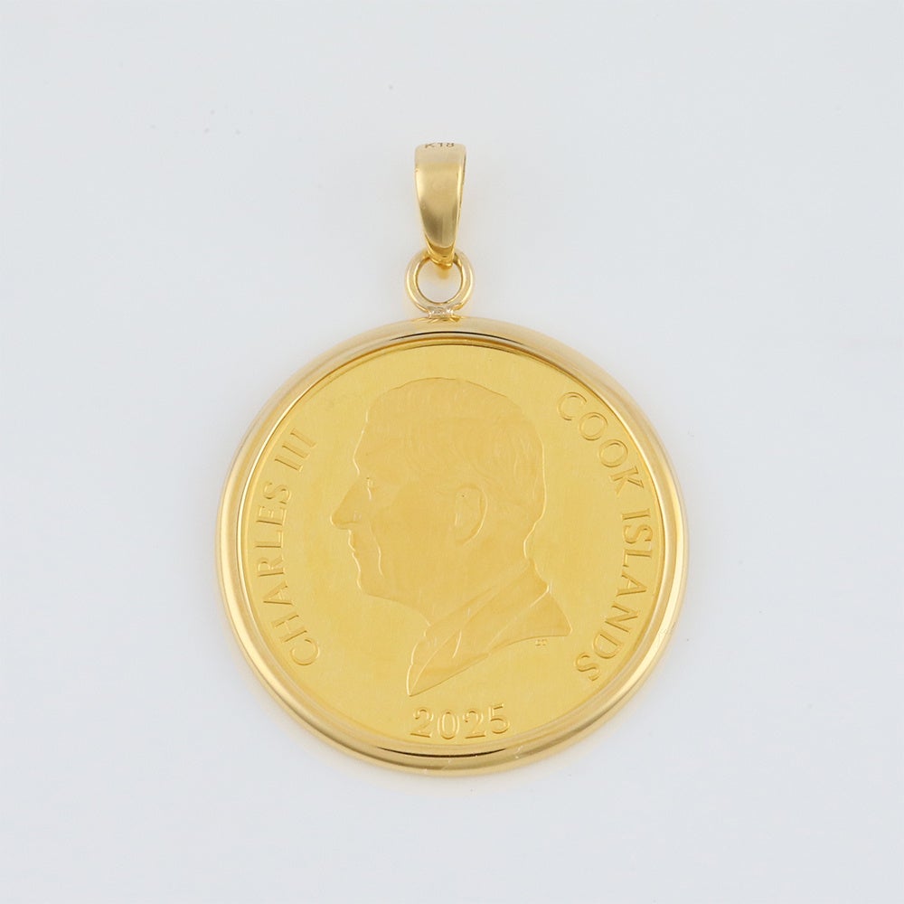 コインには18金(K18)製のフレームを採用し、ペンダントトップとして身に着けることが可能。