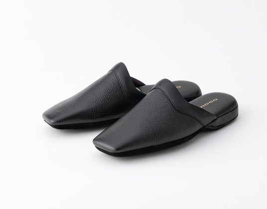 本製品は、靴づくりと同様の工程で木型から製作し、足を包み込むようなホールド感と美しいフォルムを実現した本革スリッパです。